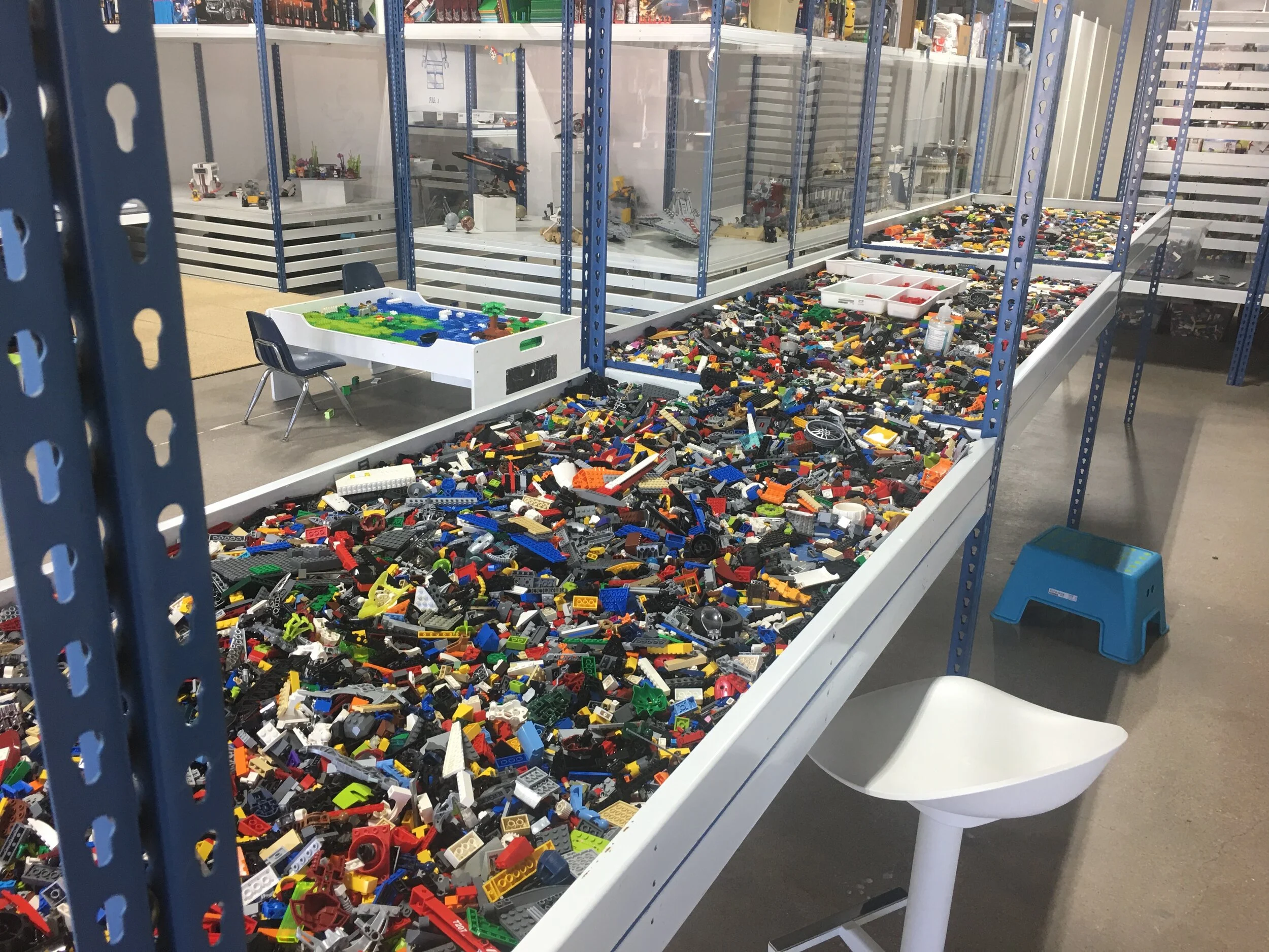 You may have noticed tub after tub of LEGO throughout our store; stashed above, below, and around every corner. We have so much bulk LEGO at our store that it allows us to cycle through parts on the building tables, keeping clean LEGO out and ready to use.